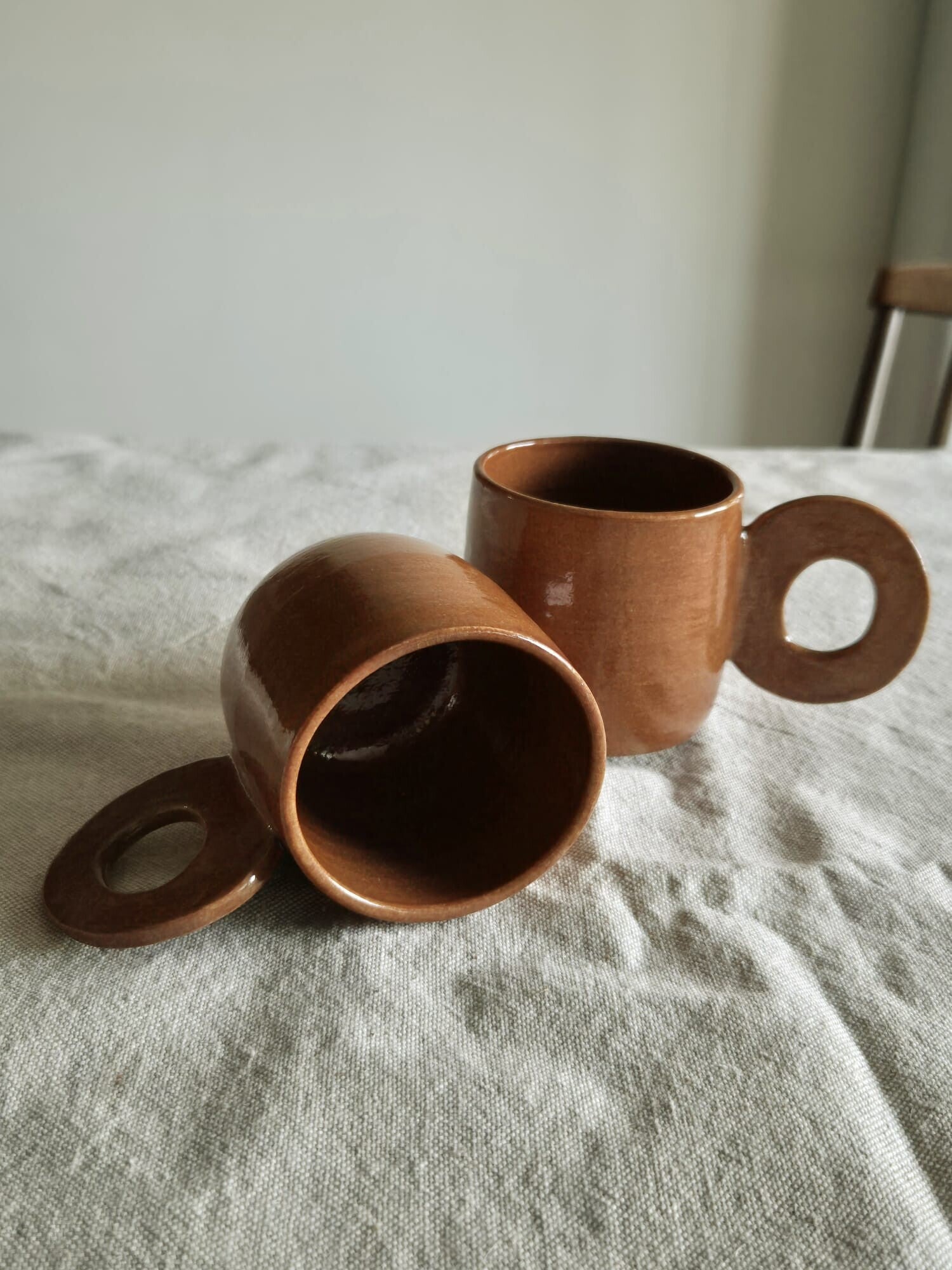 Set van 2 speelse mokjes in een warme bruin tint. (hier komt nog meer tekst over formaat, inhoud etc)De mokjes zijn vaatwasserbestendig.