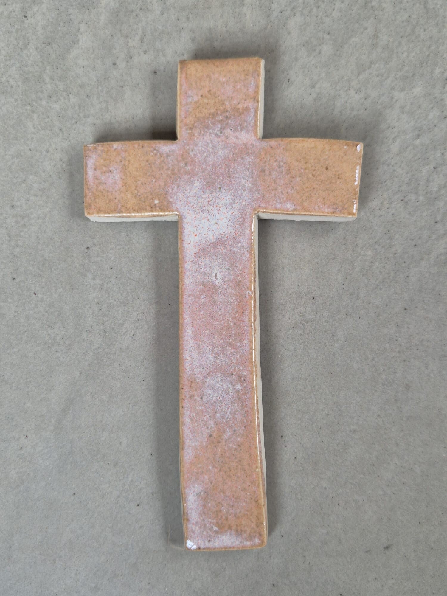 Uniek handgemaakt kruisje van keramiek. Er zit een haakje aan waardoor het mogelijk is het kruisje op te hangen.