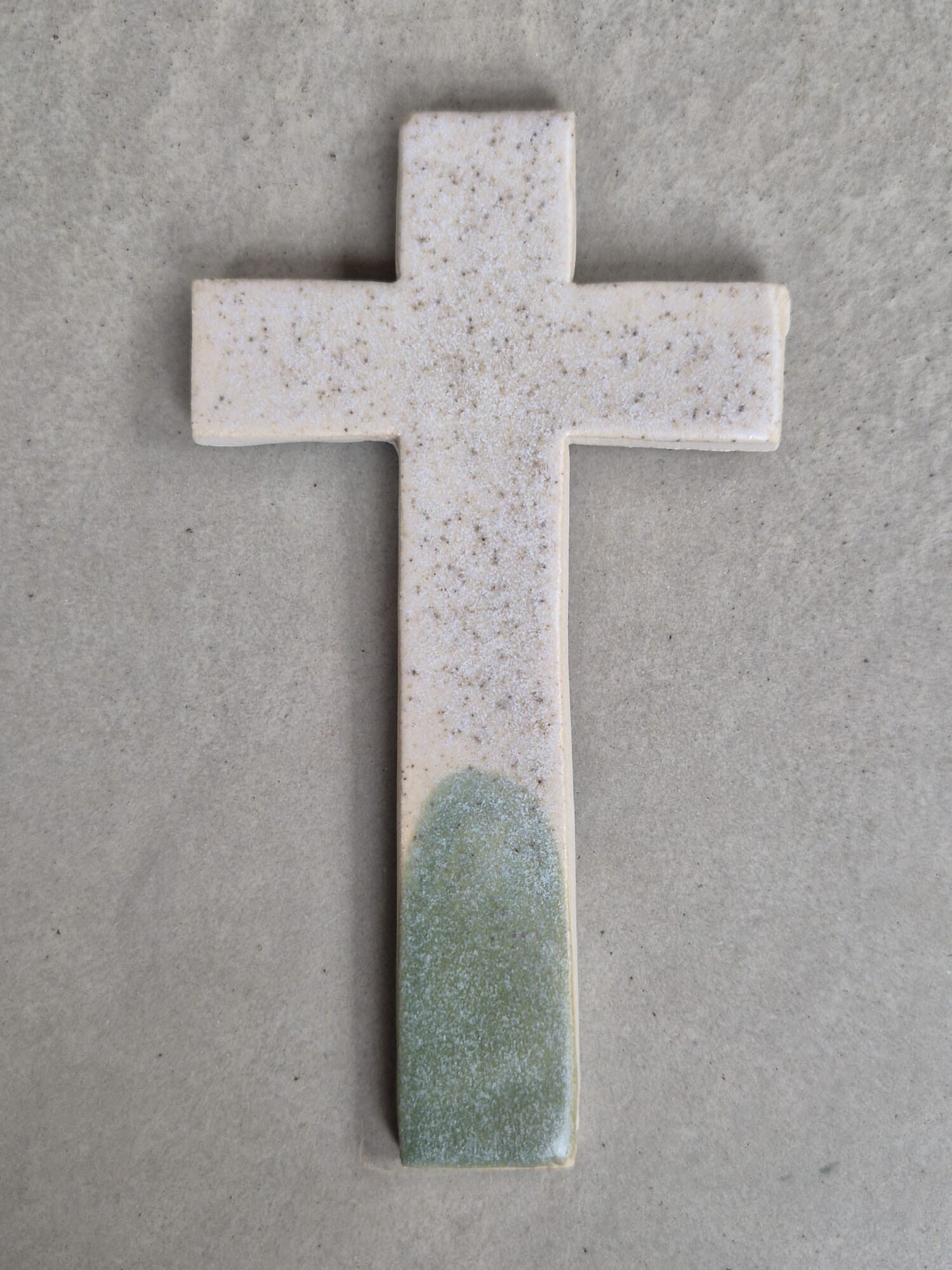 Uniek handgemaakt kruisje van keramiek. Er zit een haakje aan waardoor het mogelijk is het kruisje op te hangen.